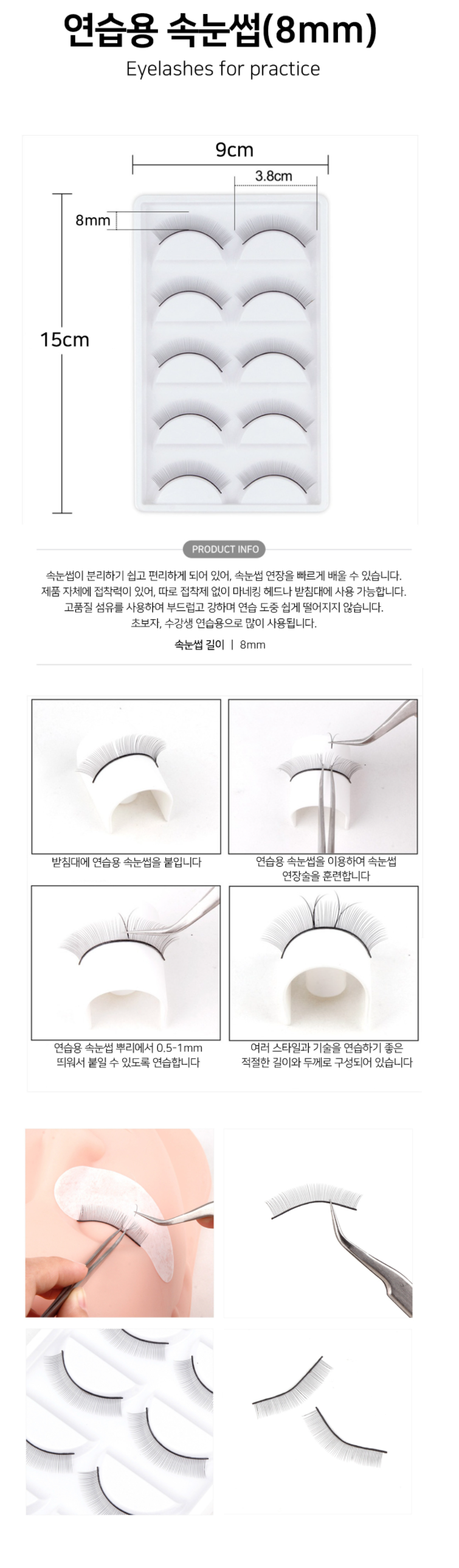 연습용 속눈썹 8mm 5쌍 속눈썹 연장 초보자 수강생 필수 연습재료
