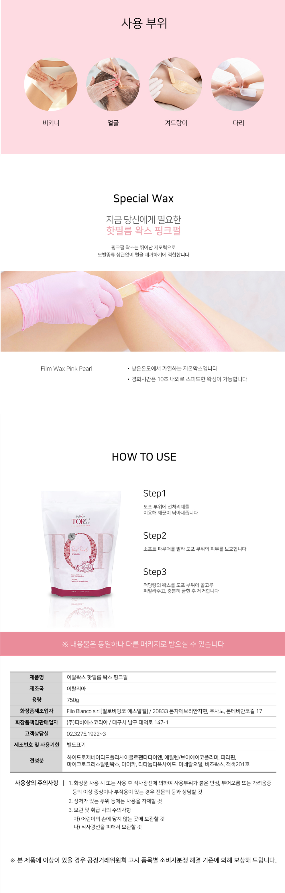 이탈왁스 하드 탑 핑크 펄 왁스 750g / 얼굴 전신 브라질리언
