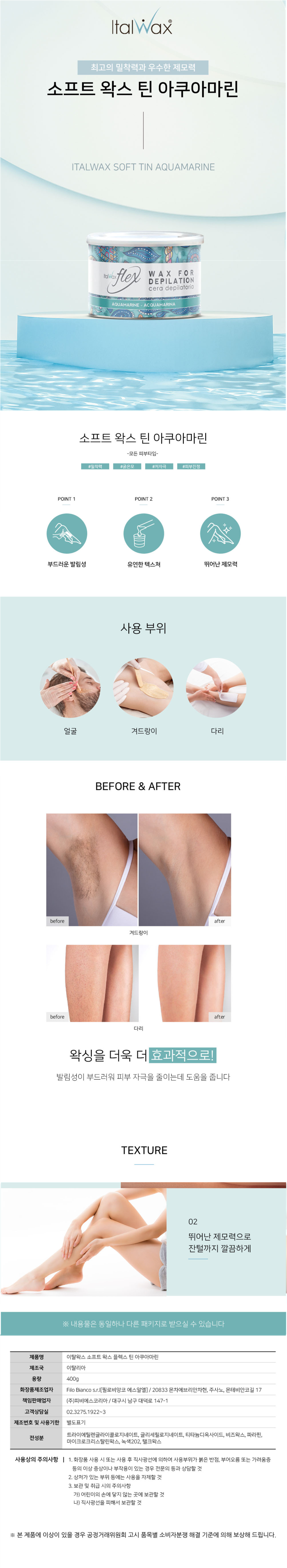 이탈왁스 소프트 왁스 플렉스 틴 아쿠아마린 400g / 팔 다리 얇은털 브라질리언