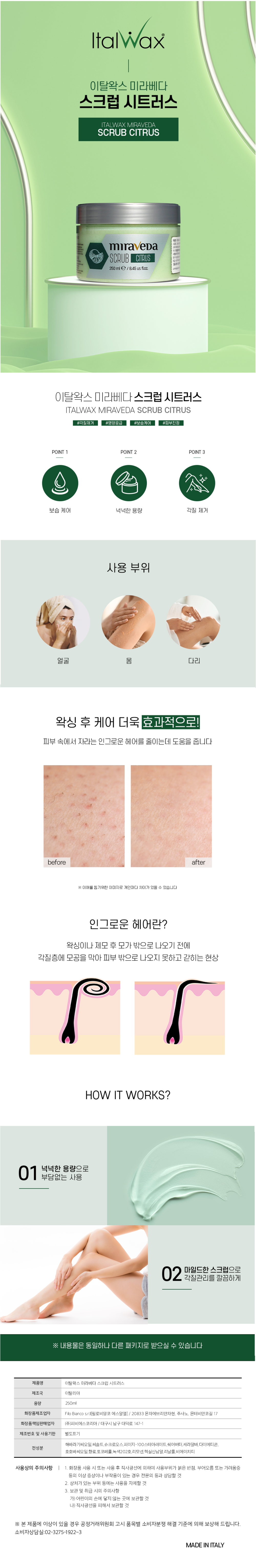 이탈왁스 미라베다 스크럽 시트러스 250ml / 후처리제 시술 후 각질 인그로운 케어