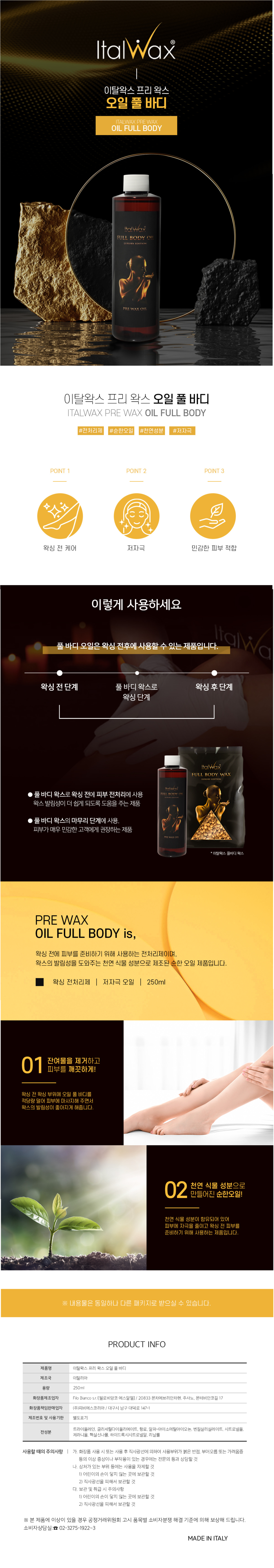 이탈왁스 전처리제 풀바디 오일 250ml / 왁싱 유수분제거