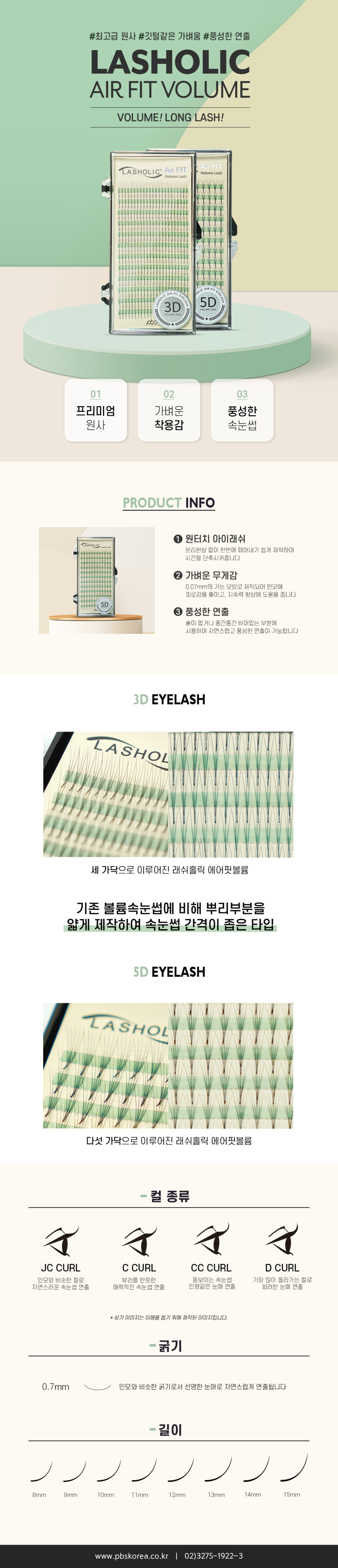 [래쉬홀릭] 에어핏 볼륨 3D 5D /CC컬 D컬 /굵기 0.7mm [12줄]