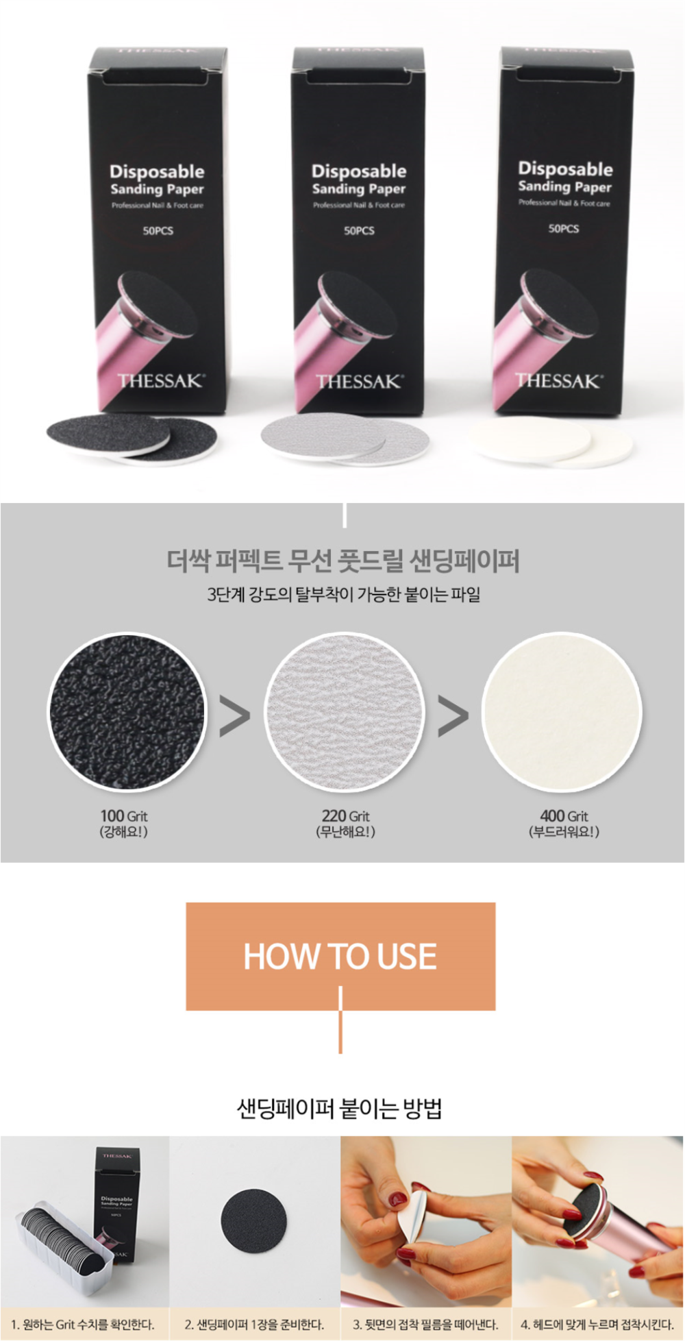 [더싹] 퍼펙트 무선드릴 샌딩페이퍼 50pcs/ 패디플래닝