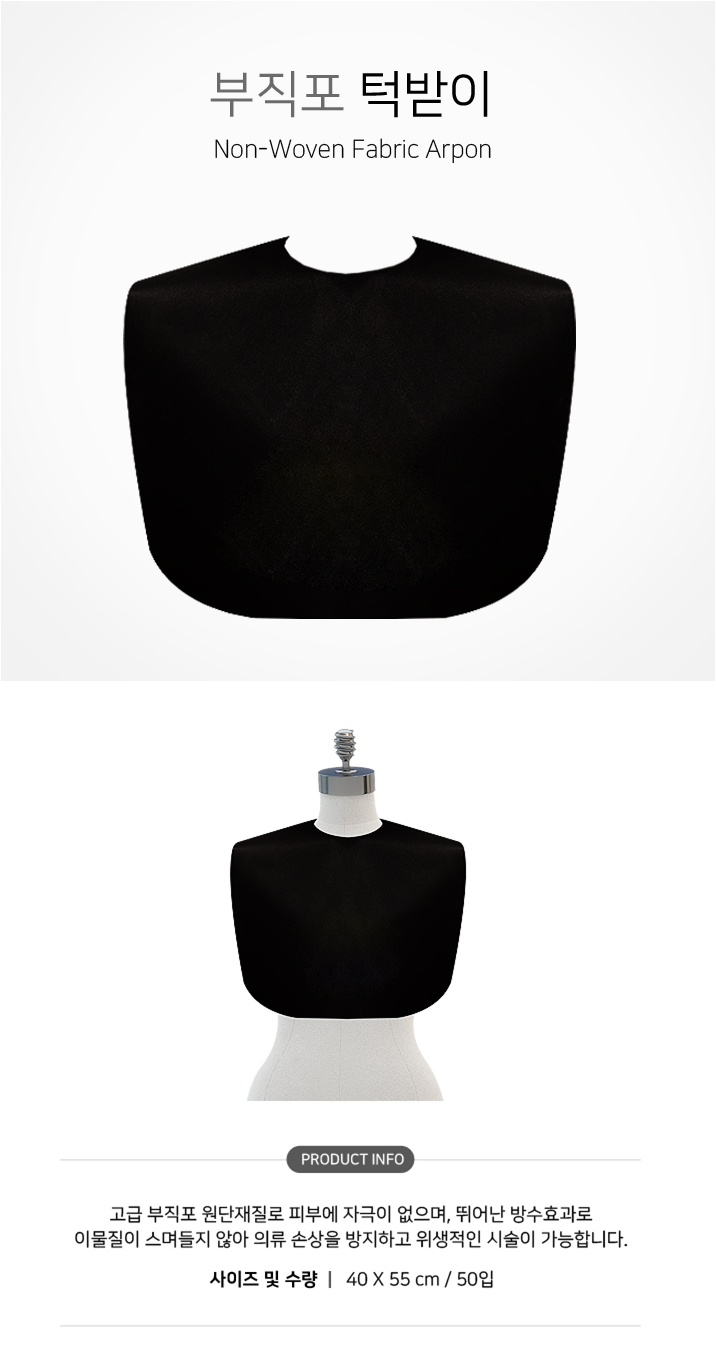 반영구재료 일회용 방수 시술용 부직포 턱받이 블랙 50매입 미용재료