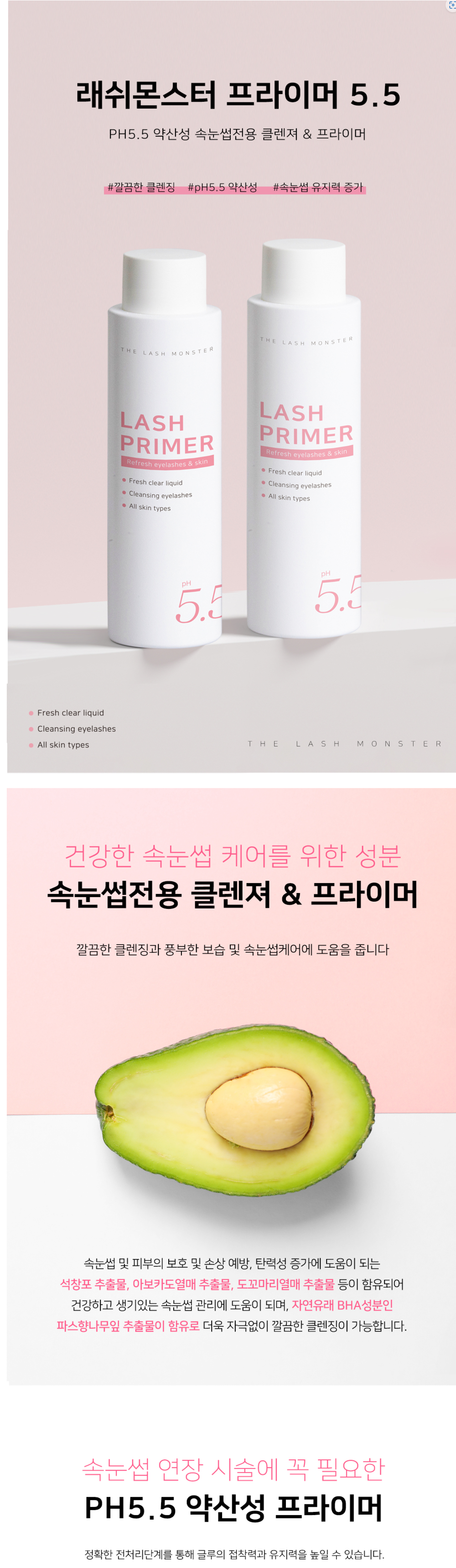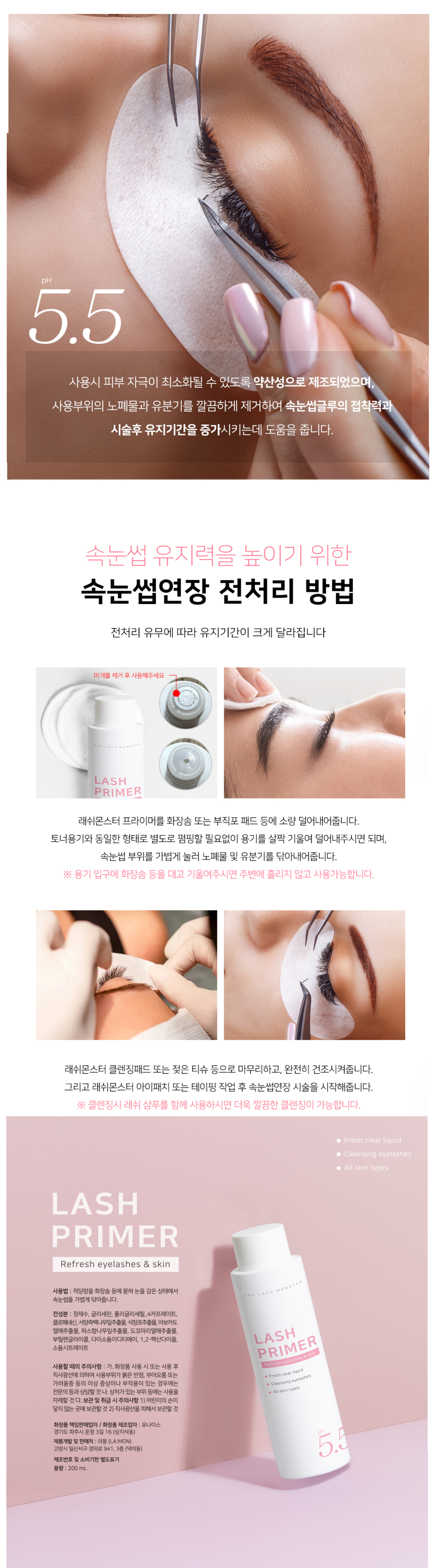 래쉬몬스터 속눈썹 프라이머 5.5 / 약산성 속눈썹시술 전처리제 래쉬클렌저 /클렌징 연장 펌 재료