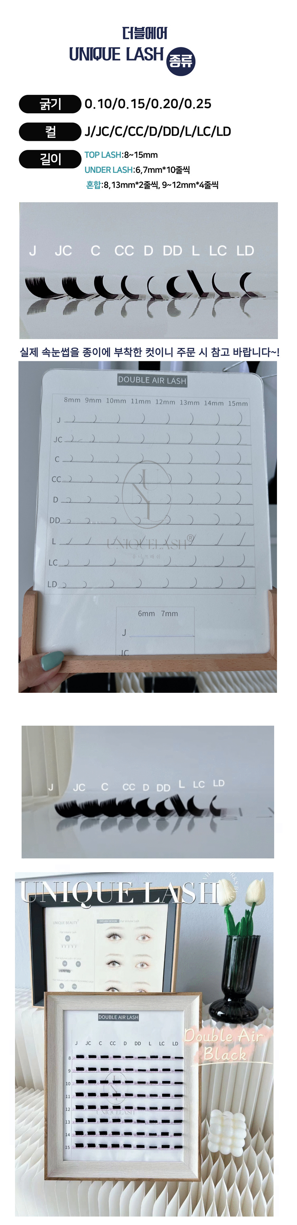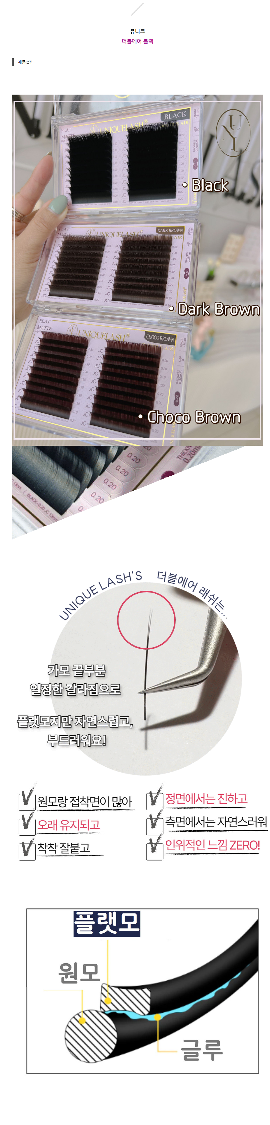 유니크 더블에어 [플랫모] 블랙 - L /LC / LC 컬 - 20줄 /혼합 [MIX] /플랫래쉬 천연모