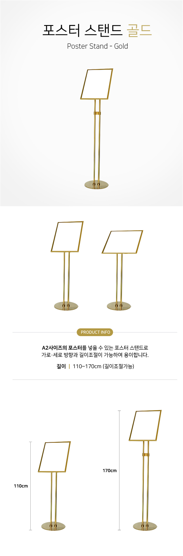 포스터 스탠드 [높이조절] 골드 110-170cm