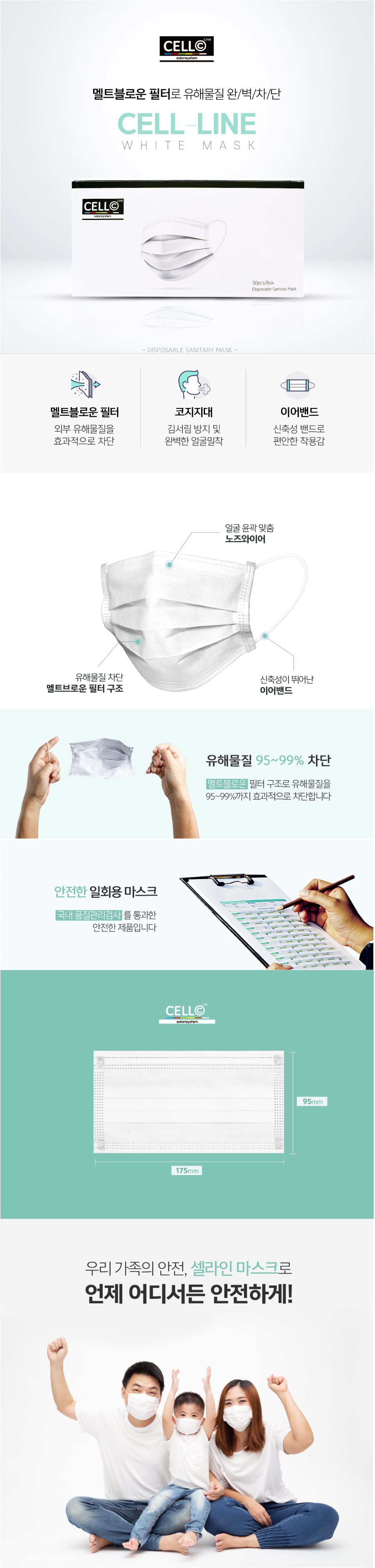 [셀라인] 화이트 마스크 / 50매