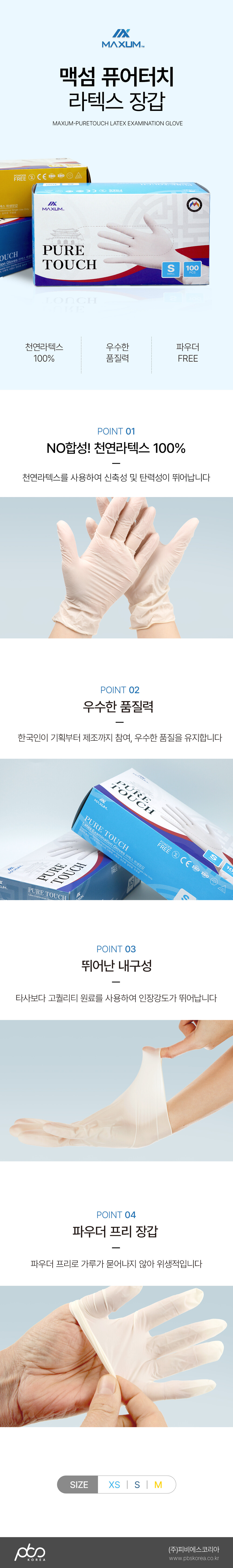 [Maxum] 파우더프리 라텍스 장갑 100입 / [시술장갑] / 사이즈 XS / S / M