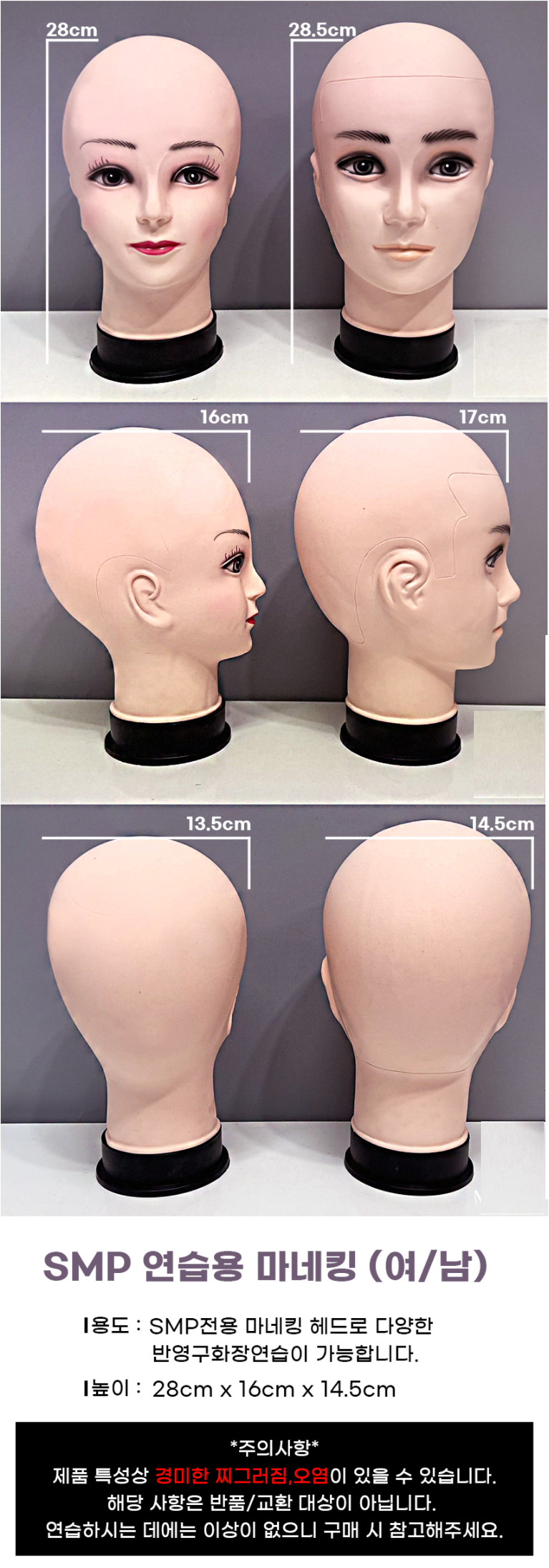 smp연습용 마네킹 헤드 짱구 / 남자/여자 두피타투