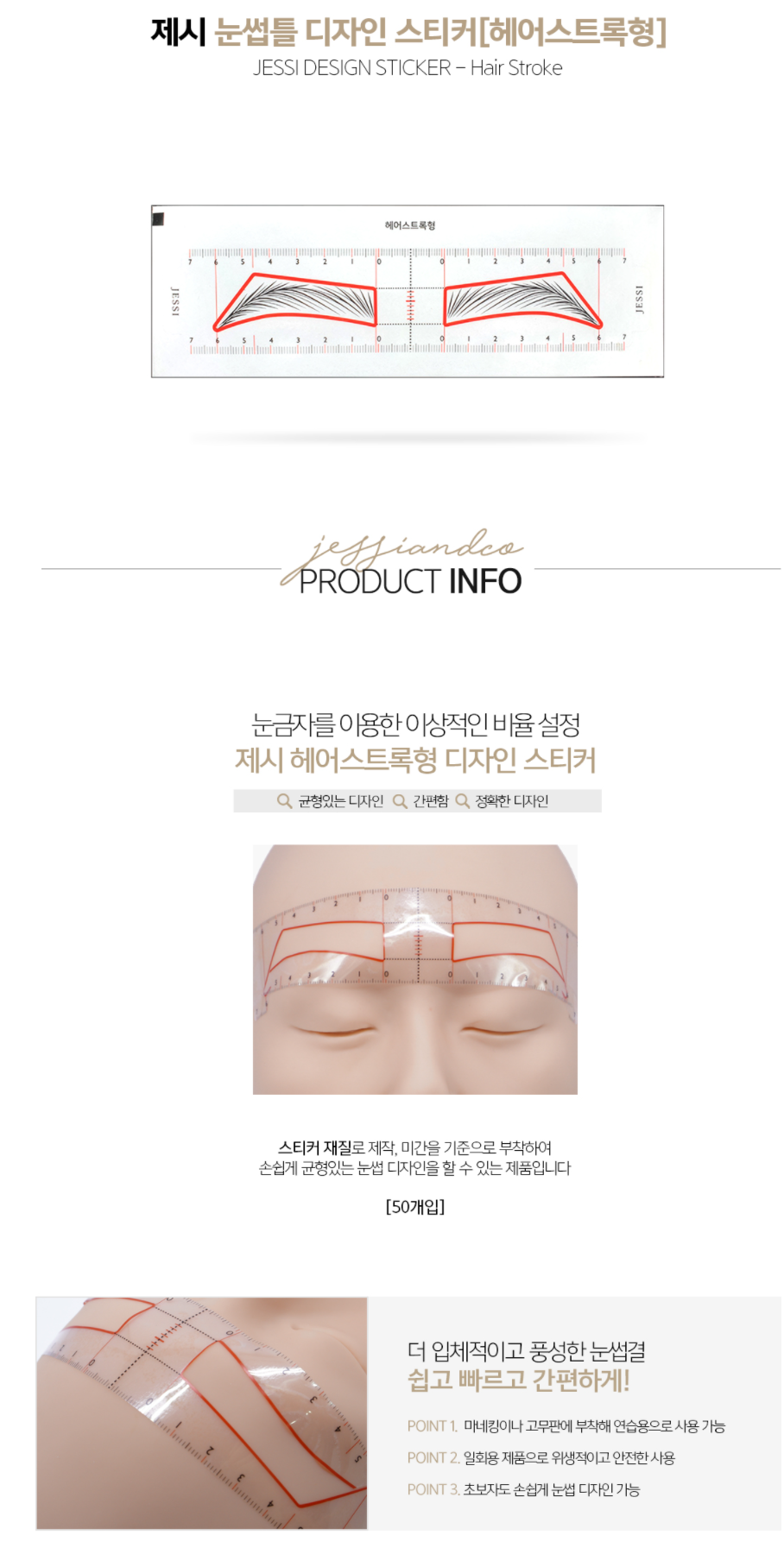 눈썹틀 디자인스티커 [헤어스트록형] 50장 / 눈썹자
